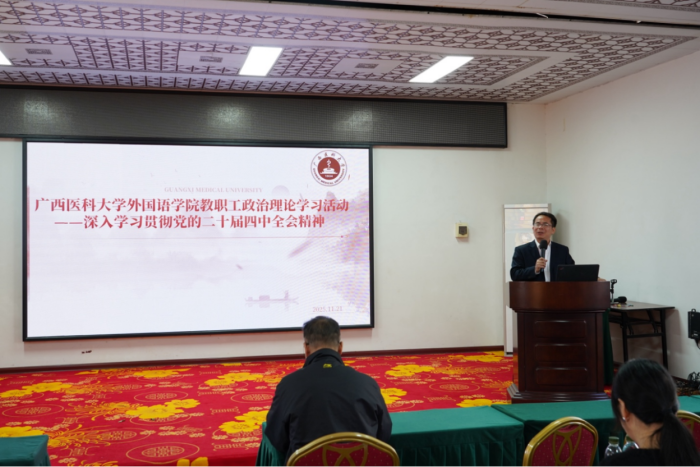 学院党委书记韦建辉在开场致辞中肯定了“理论+拓展”相结合的活动形式。他强调,全院教职工要以此次学习为契机,将深入学习党的二十届四中全会精神有机融入外语教学与人才培养全过程。