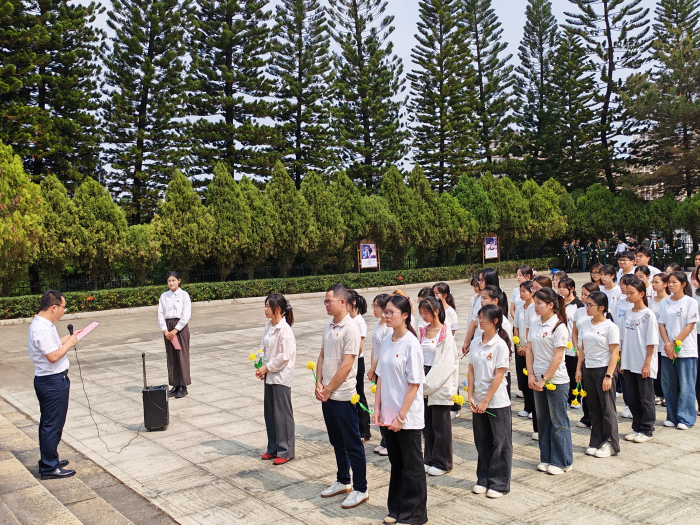 与此同时,武鸣区革命烈士纪念碑前,本科生党支部党员等师生代表齐唱国歌、肃立默哀,依次敬献鲜花。黄万获回望先辈峥嵘岁月,勉励同学们铭记历史、珍惜当下,将爱国情、强国志、报国行融入日常。