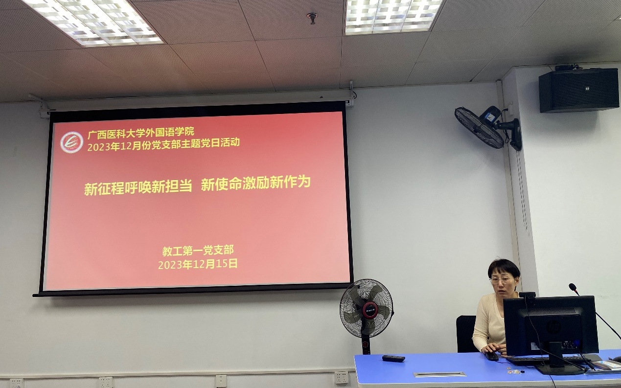 根据bv伟德国际1946党委部署安排,2023年12月15日,bv伟德国际1946教工第一党支部在校本部综合楼三楼303会议室召开“新征程呼唤新担当,新使命激励新作为”主题党日活动。会议由支部书记张莉主持。
